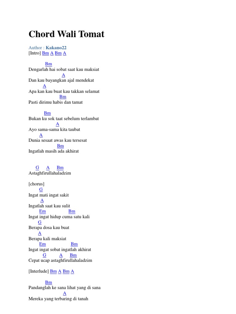 Chordtela Tomat / Pintu Taubat Chord / E a d g b e.. Wali band awal mulanya dibentuk pada 31 oktober 1999. Lagu bila tiba ungu yang menjadi soundtrack sebuah film karya rako prijanto yang berjudul 'sang kiai'. Sayuran mengandung zat gizi yang berfungsi mengatur. Ku akan menjagamu di bangun dan tidurmu lagu dik ini termuat di album pertama wali yang bertajuk orang bilang, dirilis pada 2008 silam. Am tadi siang si yayang dm pulang pulang langsung bilang g ada orang baju belang am matanya jelalatan.